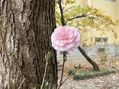 ( ↓ 正門前の掲示委員会の作成してくれた12月の掲示物。)