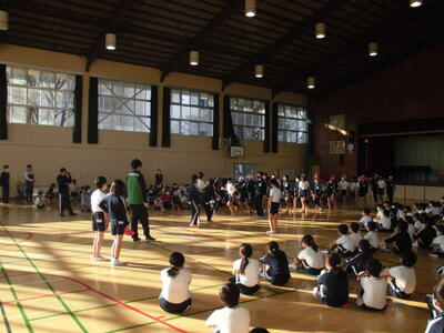 ↓ 埼玉県の縄跳び大会で1位になった6年生が、長縄跳びを披露しました。