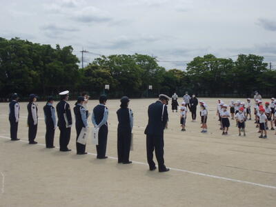 今日の学校(放送朝会、交通安全ボランティアさん「お願いします」の会)