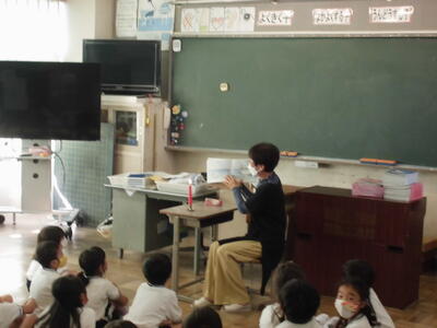 本日は、「お話し会」の方々に来校いただき、子供たちが、物語や絵本などのお話しを聞かせていただく会がありました。1・2・3年生とたんぽぽ・ひまわり学級の各教室で、絵本を読んでいただいたり、お話しを聞かせていただきました。