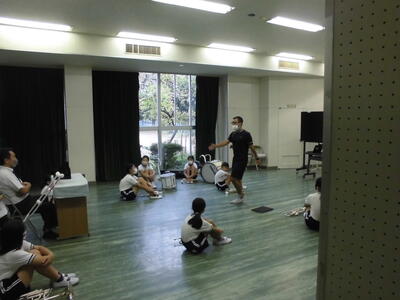 今日の練習は終わりました。雨天で校庭は使えませんでしたが、工夫して練習をおこなうことができました。今度、校庭で実際に合わせて見るのが楽しみです。