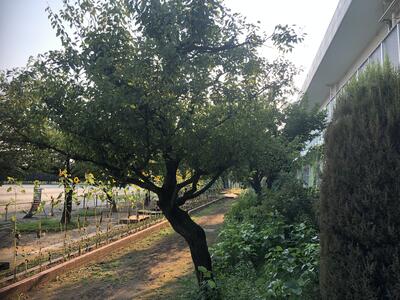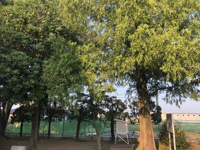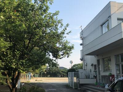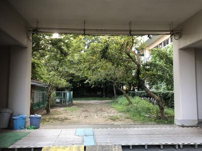 ※体育館と児童棟の間の北側駐車場への通り道なので、お通りの際には頭上からのクリの実(イガ)の落下にお気をつけ下さい。