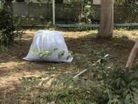 校務員さんが、雑草や落ち葉を集めてくれています。