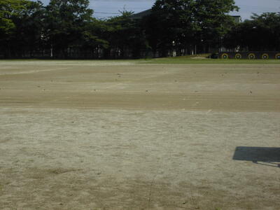 ↓ 夏休み直前の校庭。臨時休校中から、先生たちでこまめに除草をおこなってきました。(特に、校長先生・教務主任の先生・保健の先生・校務員さんが、ほぼ毎日おこなっていました。) 学校再開してから、子供たちが運動したり、清掃の時間の児童の除草もあって、梅雨あけの校庭でしたが、ほぼ雑草が生えていない状態です。