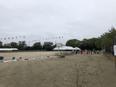 13:00 PTA役員やおやじの会の方々、お手伝いいただいた保護者の皆様にご協力いただき、校庭の片付けもいったん終了しました。このあと、おやじの会の方々にご協力いただき、地域にお借りしたテントの運搬・返却をおこないました。また、子供たちはお弁当を食べて午後、用具の片付けなどを行いました。