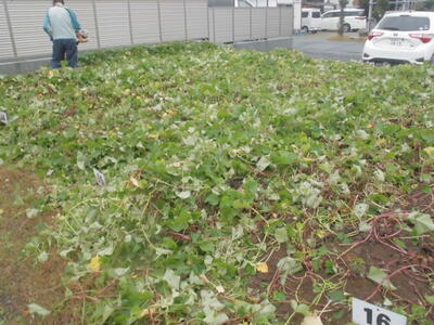 一学期に1・2・3年生が植えたサツマイモの苗が元気に育って収穫の時季となりました。今週、1・2・3年生の子供たちがサツマイモ掘りをおこなう予定なので、今日は学校のサツマイモ畑で、栽培ボランティアさん・花壇ボランティアさんにご協力いただいて、サツマイモのツル切りをおこないました。