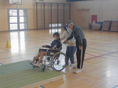 実際に車イスに乗ってみたり、押してみたりして、車イスを利用している方の気持ちを考え、自分たちに何ができるかを考え実践していく学習です。