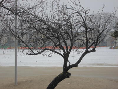 今日は土曜日で、学校は休みです。昨日までに降った雪も、とけてきました。