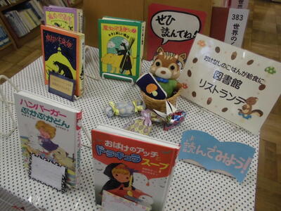 ( ハロウィンにちなんだ本の紹介。図書館支援員さんが本の整備をしてくれています。)