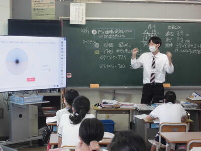 現在、教育実習期間ですが、今週は最後の第4週となりました。教育実習生が授業をおこなっています。(写真は昨日の授業の様子です。)