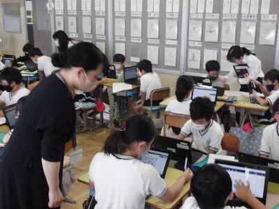 3年生が総合的な学習の時間で、学区内の安全マップを作っています。