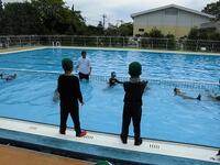 2時間目にプールに行ってきました。何やらいつもと違う様子です。子供たちが皆、洋服を着ています。そうです。今日は着衣水泳を実施ししていました。着衣水泳の主な目的は、水難事故の防止に役立つ知識と方法を体験しながら学習することです。洋服を着たまま水に入ると洋服が水を吸って手足を動かすのが難しくなります。泳力に自信があっても、たとえ浅く足がつくような水深でも、おぼれることはあります。浮くことを第一にペットボトルを使って浮く体験をしました。今日の体験が生きるような場面に遭遇しないことが一番ですが、いざというときには冷静に行動できるように備えておけるといいと思います。着衣水泳に向けて、靴や洋服などご準備いただいた保護者の皆様、ご協力ありがとうございました。
