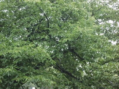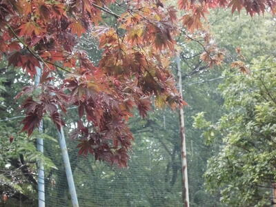 ( ↓ 午前中の雨。木々からしずくがたれています。)