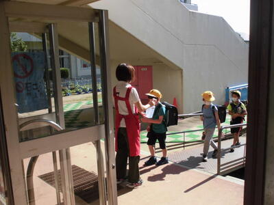 昨日、15日(月)の午後は、一斉下校でした。また、日ごろから子供たちの登下校を見守ってくださっている方をお招きして「お願いします」の会がおこなわれました。これは、交通安全ボランティアさんや交通指導員さんに「よろしくお願いします」のあいさつをして感謝の気持ちを伝えるものです。(例年は年度当初におこなっていますが、今年は臨時休校期間があったため、この時期になりました)