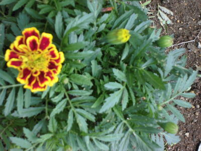 5月に、校長先生と校務員さんが植えた、正門の花壇の花が咲き始めました。