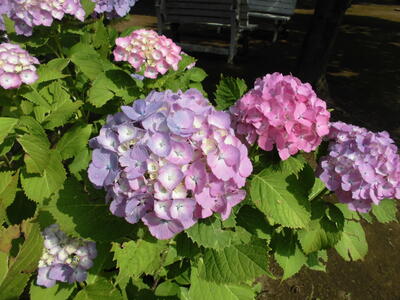 学校では、6月になって、あちらこちらでアジサイが咲いています。