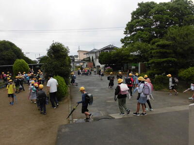 今日は雨が降ったり、やんだりの一日となりました。6時間授業を終えて、子供たちが下校するときは、曇り空でしたが雨はやんでいました。