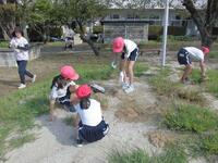 繁茂した雑草が非常に多い小渕小では、こどもたちの作業だけではとても追いつきません。
