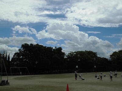 朝は、全体で応援合戦の練習をおこないました。密を避けるために、となりとの間隔をじゅうぶんにあけたり、マスクをしたまま声を出したりと、例年とは違う形での取組ですが、子供たちは精一杯に練習に励んでいます。