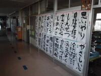 3年生の廊下の掲示を紹介します。習字で、三学期に頑張りたいことを書いています。