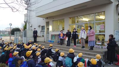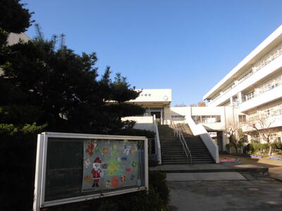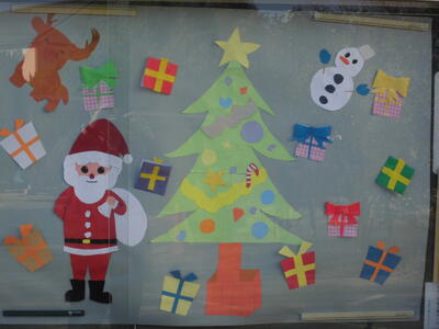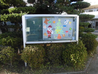 12月になり、学校の正門の掲示版も12月らしいイメージの掲示物に替わりました。