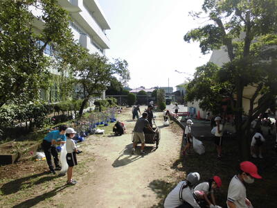 参加の皆様、本日は来校いただき、また暑い中での作業、誠にありがとうございました。9月下旬には運動会も予定され、その練習も始まります。きれいになった校庭を子供たちが元気に駆けていくことと思います。