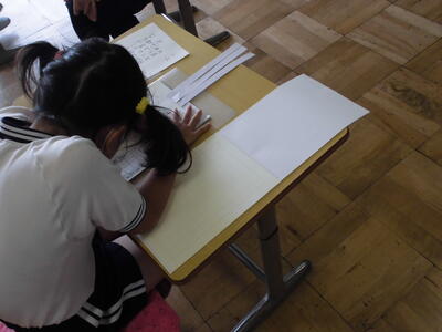 本日は、硬筆の競書会がありました。子供たちは、自分の教室で、机にむかい真剣に清書を仕上げました。