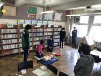 保健室の先生や体育担当の先生が中心となって、意識を失った人がいた場合の心臓マッサージの仕方やAEDの使い方について、全員で訓練をおこないました。4月から始まる学校生活の中で、子供たちが安全な学校生活を送れるように日頃から心がけています。