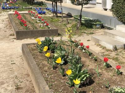 新年度となって2日目の小渕学校です。風の強い日となりましたが、よく晴れています。校内の花が色とりどりに咲いて、子供たちの登校を心待ちにしています。4月8日に新学期の始業式、4月9日に入学式の予定です。