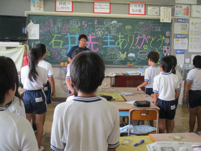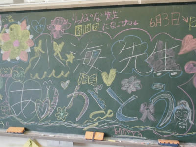そこで、お世話になった石井先生と、小海先生にそれぞれのクラスで「お別れ会」をおこないました。本当は、最終日である明日行う予定でしたが、陸上競技大会が明日に延期になったので、1日早いお別れ会です。