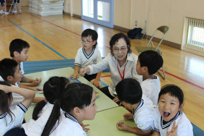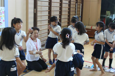 1年生・2年生が、「むかしの遊びを教わろう会」を実施しました。地元「松寿会」のみなさんに御来校いただき、コマや羽子板、あやとりなど、むかしの遊びについて御指導いただきました。