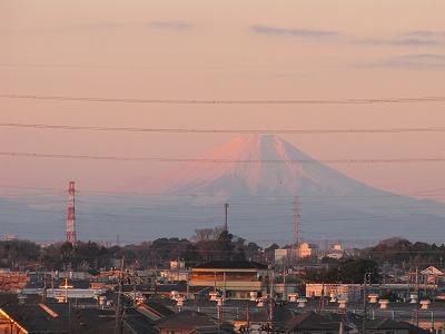 日の出と共に、日本一の山、富士山がその姿をはっきりとさせ始めました。浦和レッズのホーム埼玉スタジアムもはっきりと見えました。