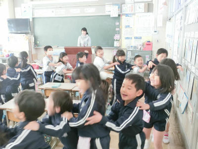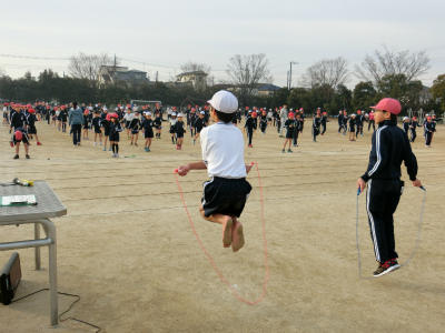 今日の朝は体育朝会、底冷えのする中でも小渕っ子は元気です。