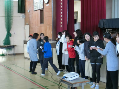 3月1日(金)、6年生児童とその保護者、小渕小職員による「謝恩会」が行われました。6年生保護者の「卒対さん」の皆さんを中心に企画を進めていただき、当日は、多くの6年生保護者の皆さん、そして子どもたちと一緒に楽しい時間を過ごすことができました。