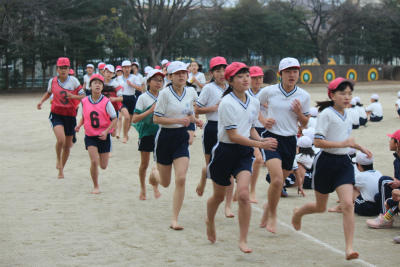 卒業が近づいた6年生は気合い充分。6年間の仕上げの走りを後輩たちに披露しました。後輩たちも、そんな先輩たちを大声で応援します。