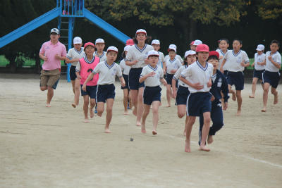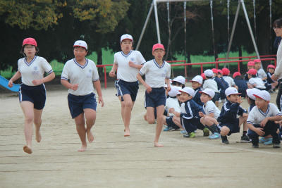 最後は、後輩たちが新学年のコースを走って、先輩たちに恩返し。6年生はもちろん、1年生から5年生も元気にたくましい姿を見せてくれました。