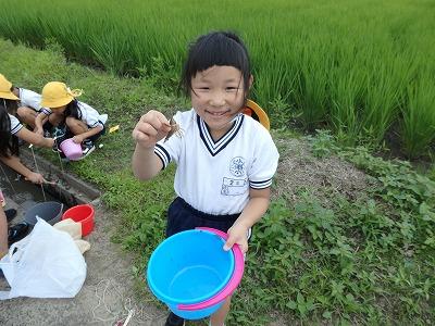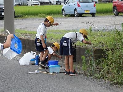 2年生が生活科の勉強で、ザリガニを釣りに行きました。それぞれの竿をおろし、ザリガニにえさをはさませて釣り上げました。残念ながら釣れなかった子もいましたが、貴重な体験学習をすることができました。