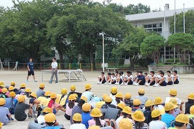 9月の生活目標について、二人の先生から問いかけの形式でお話がありました。今月の目標は「人の集まるところでは静かにします。」です。様々な場面で、良い習慣が育つとよいなあと思っています。