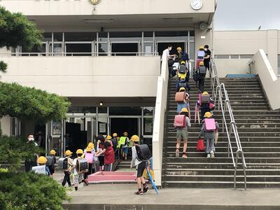 ( ↓ 午後になりました。午後登校のグループが登校してきます。)