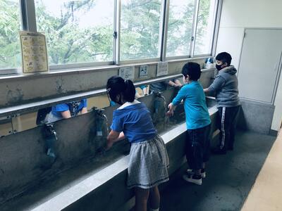 学校再開3日目の学校です。本日は、気温も上がり暑くなりました。