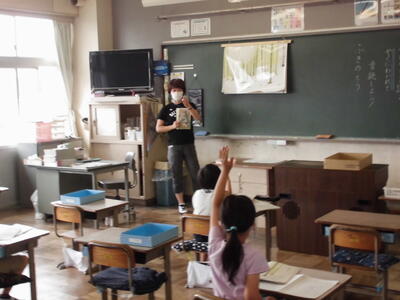 ↓ 3年生が、「質問のしかた」を学習しています。疑問に思ったことを手を上げて発表しています。