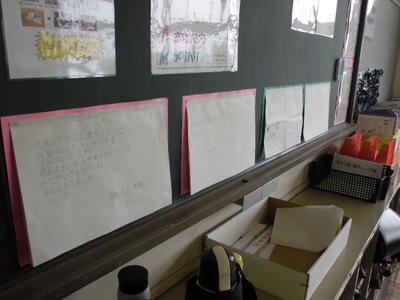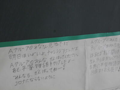 あるクラスの黒板の掲示では、クラスの子供たちから、もう半分の子供たちへのメッセージが掲示されています。