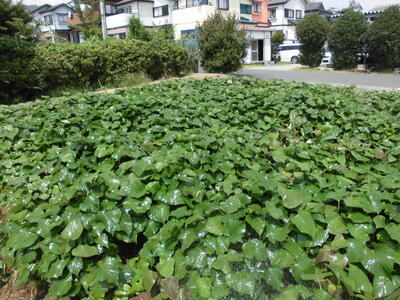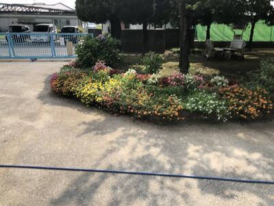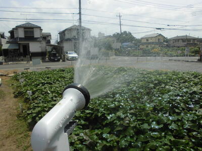 学校のサツマイモ畑のサツマイモが順調に育っています。暑い夏の間も、校長先生や他の先生が水やりをして、イモの生育を見守っています。栽培ボランティアの方も、随時、畑の世話をして下さっています。