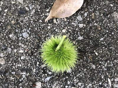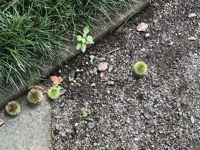 先日、ヒマワリを紹介したところですが、学校ではクリの木から実が落ちてきています。だんだん秋に近づいて来ています。