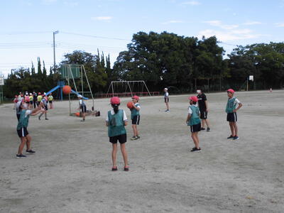 今日の朝は、二学期最初のさわやかタイム、朝の運動の時間です。