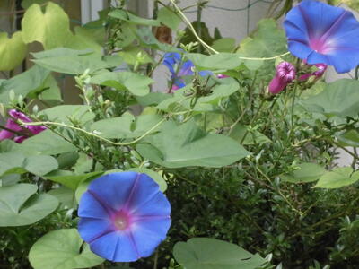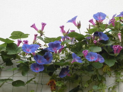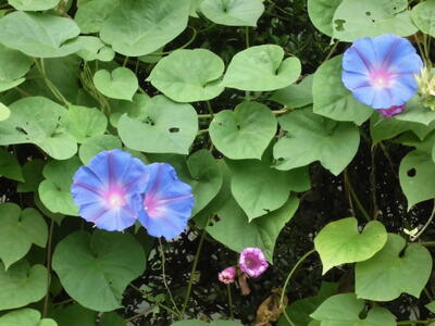 ( ↓ 夏から咲いているリュウキュウアサガオもまだ咲いています。)
