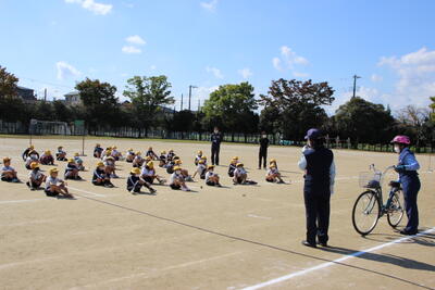 ( ↓ 3年生の交通安全教室。自転車の正しい乗り方や点検の仕方を教わりました。)