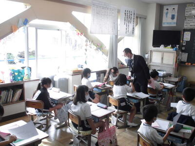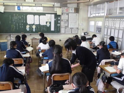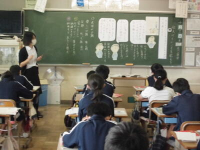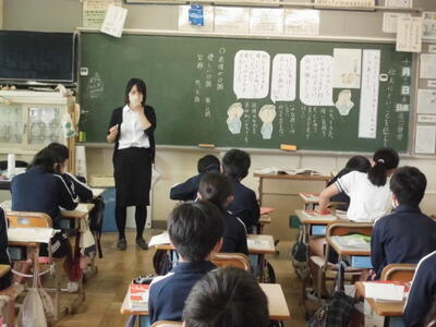 今年から小渕小に来た先生の研究授業がありました。授業を他の先生が参観してアドバイスなどをおこなうことで、学校としての授業のレベルアップを図るための研究です。