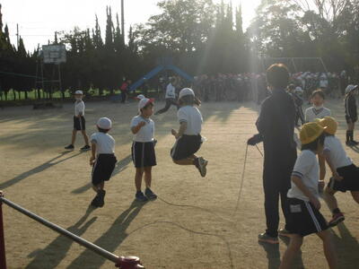 昼休みには、各クラスが、2月の校内長縄大会に向けて練習に取り組んでいます。練習を重ねて、飛ぶ回数もじょじょにあがってきています。