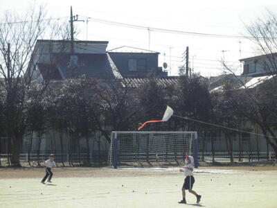 今日の朝。校庭で元気に運動している子供たちの様子が見えます。